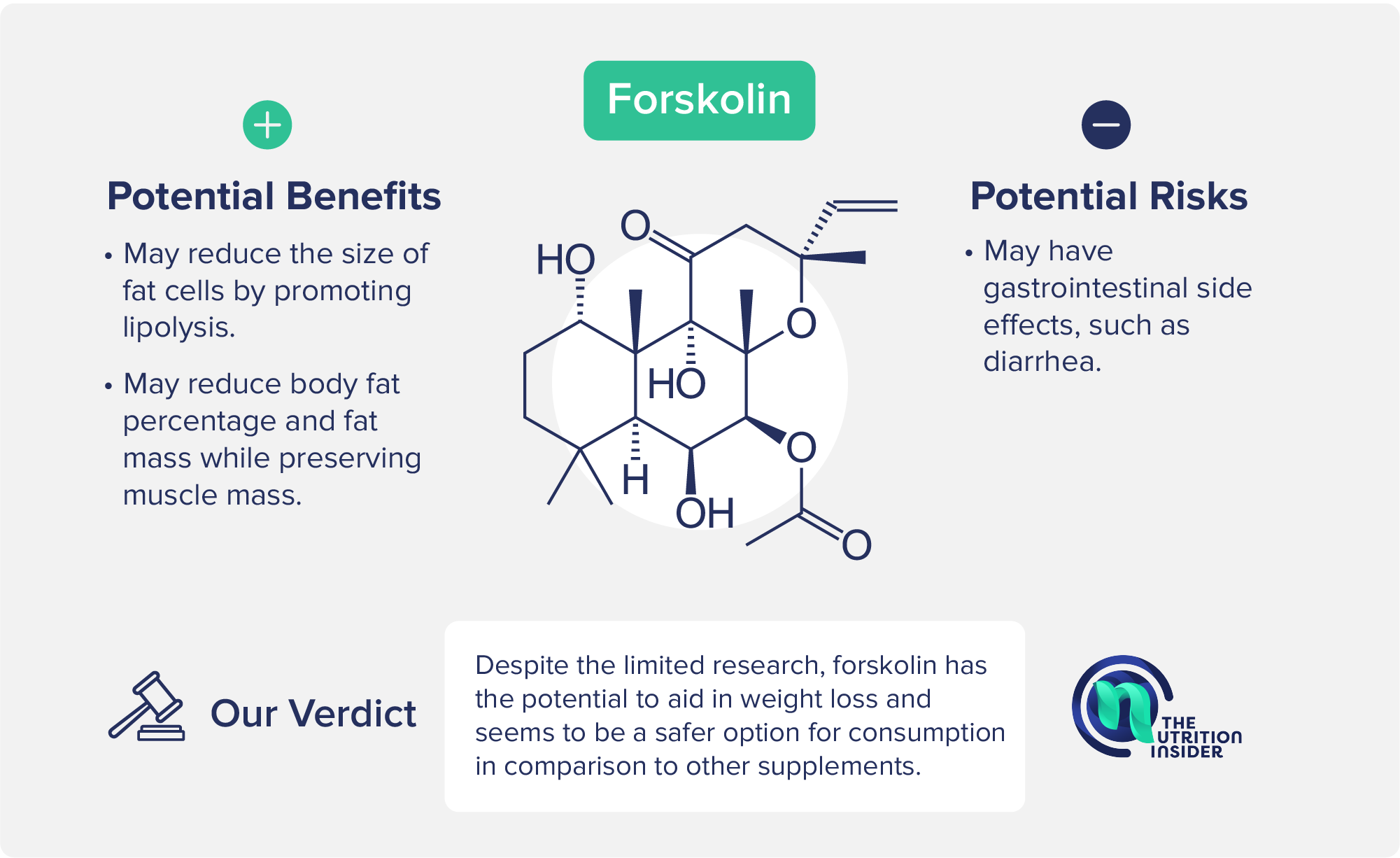 Although the research is limited, forskolin may benefit weight loss and appears to be safer for consumption than others, like yohimbine and Garcinia cambogia.